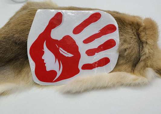 MMIW Missing and Murdered Indigenous Women, Decal Stickers, Red Dress, Red Hand, Awareness
