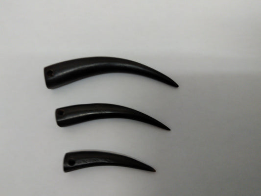 Talons, Hand Carved Black Buffalo Horn or Cow Bone 1.5"- 2.5" Drilled for Pendants