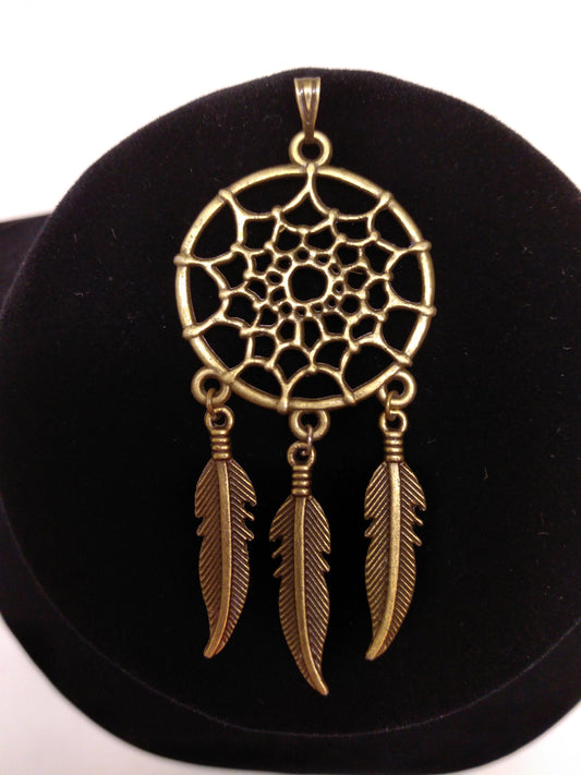 Dreamcatcher Pendant or Necklace, 3 feathers, Turquoise gem. for Jewelry, Charms, Pendants, Earrings