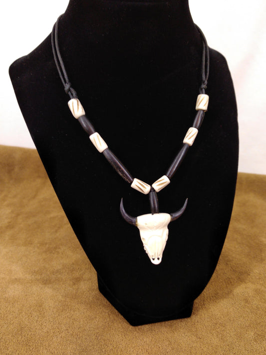 Cow Bone and Black Buffalo Horn skull Necklace, Hand Carved, Hand Crafted