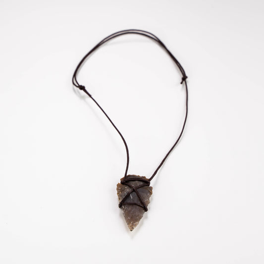 Hand Carved Agate Arrowhead Necklace on Adjustable genuine leather or synthetic cord, Indigenous made