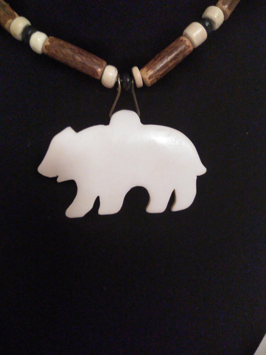 Bear, Turtle, or Wolf Cow Bone Necklace Cow Bone, Wood 18" or custom size