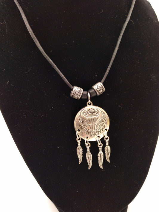 Buffalo Skull Pendant or Necklace, Metal, Accessories, Jewelry, Leather