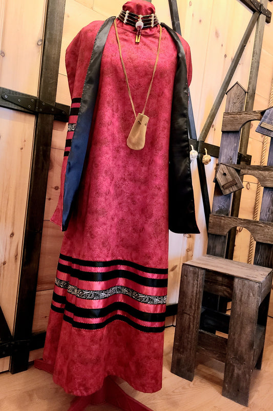 Red Ribbon Dress, 3 piece; Ribbon Dress, Satin Shawl, Choker, Indigenous Made, L'nu,
