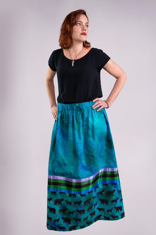 Ribbon Skirt, 100% Cotton, All sizes, Indigenous made, Custom Orders, Choice of Material, Pockets, Waist, Ribbon Color, Width and Quantity.