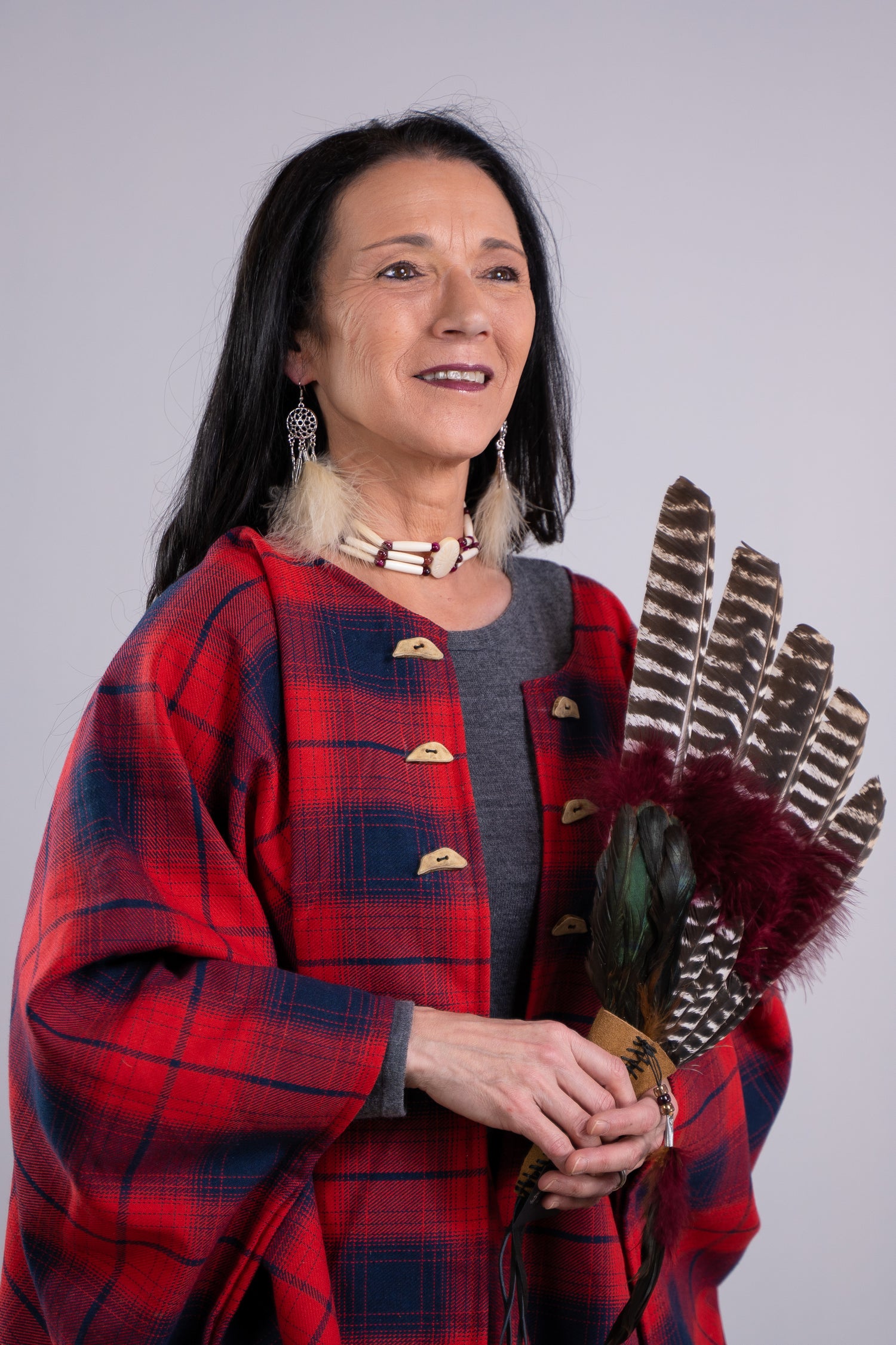 When Elizabeth makes her Skirts, Pipes, Chokers, Shawls, Regalia, Prayer Wings, Fans, Feathers, and Jewelry, no two items she makes are ever the same.