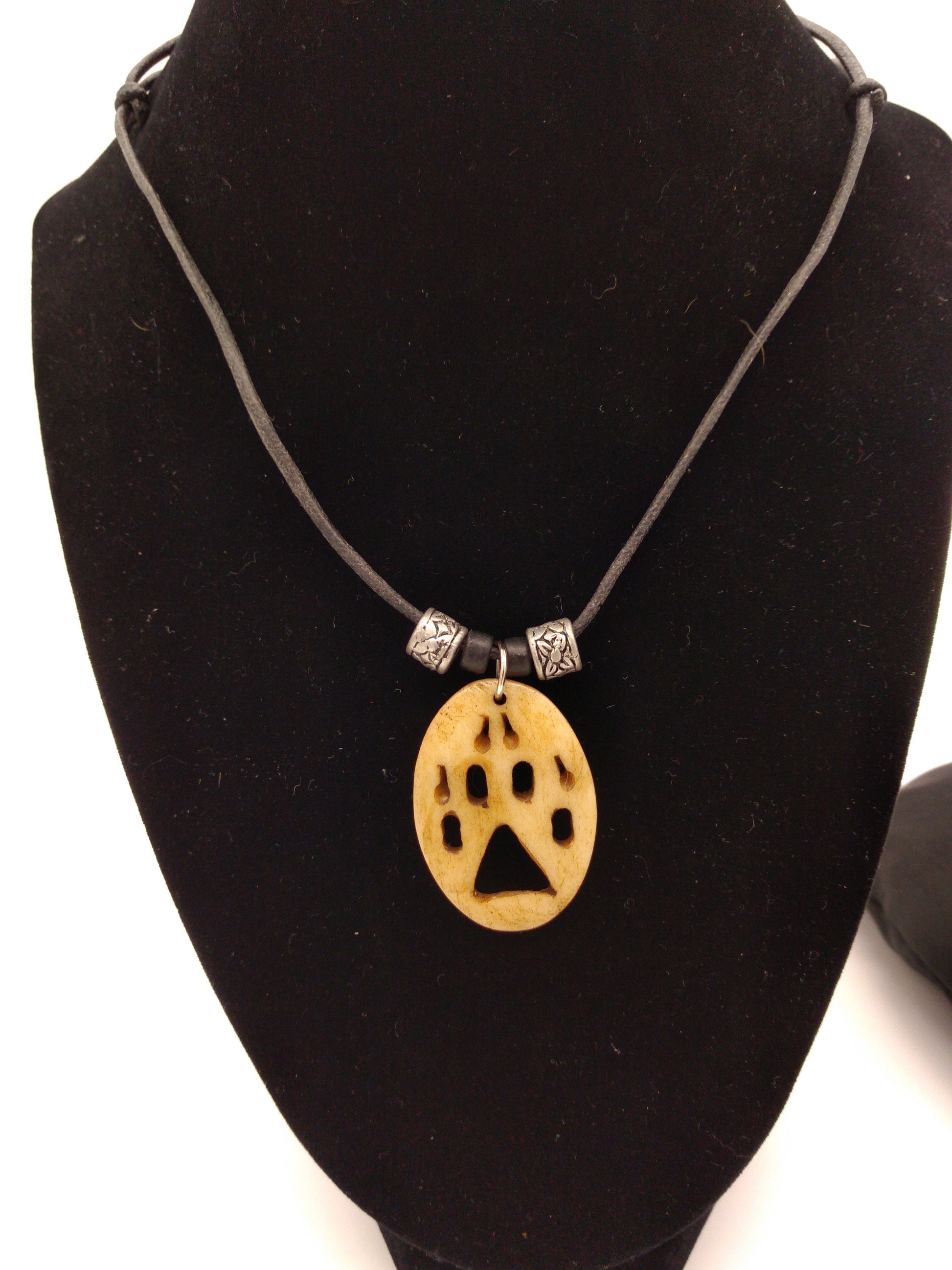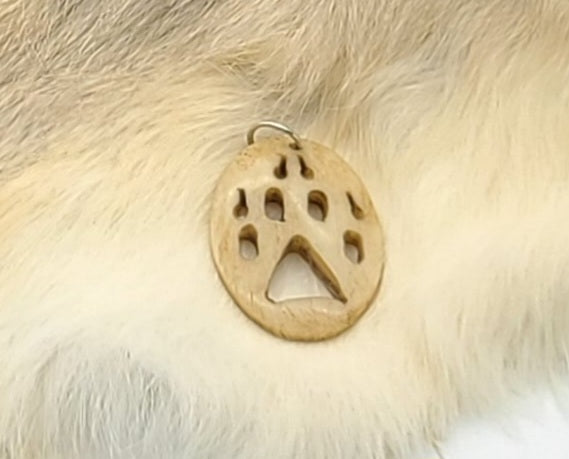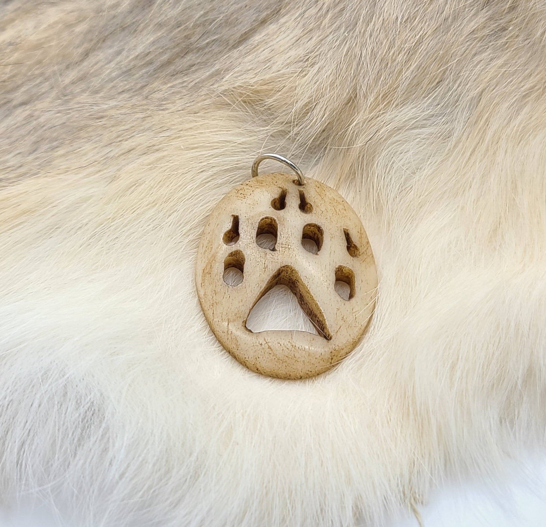 Add a unique touch to your accessory collection with our Antiqued Cow Bone Bear Paw Pendant. This hand-carved piece comes with a mounting ring and can be purchased as a finished necklace or individually. The sliding waxed cord allows for easy adjustment, making it a perfect fit for anyone. Customize it with your choice of spacers, beads, or pipes for a one-of-a-kind look.