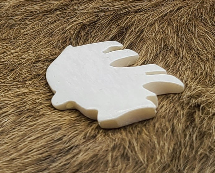 This beautifully handcrafted Bear Pendant, made from carved Cow Bone, adds a unique touch to any accessory. With through holes for easy threading, it can be used on leather, suede, necklaces, bracelets, or broaches. Each piece is unique with small variations, making it the perfect addition to any crafted work.