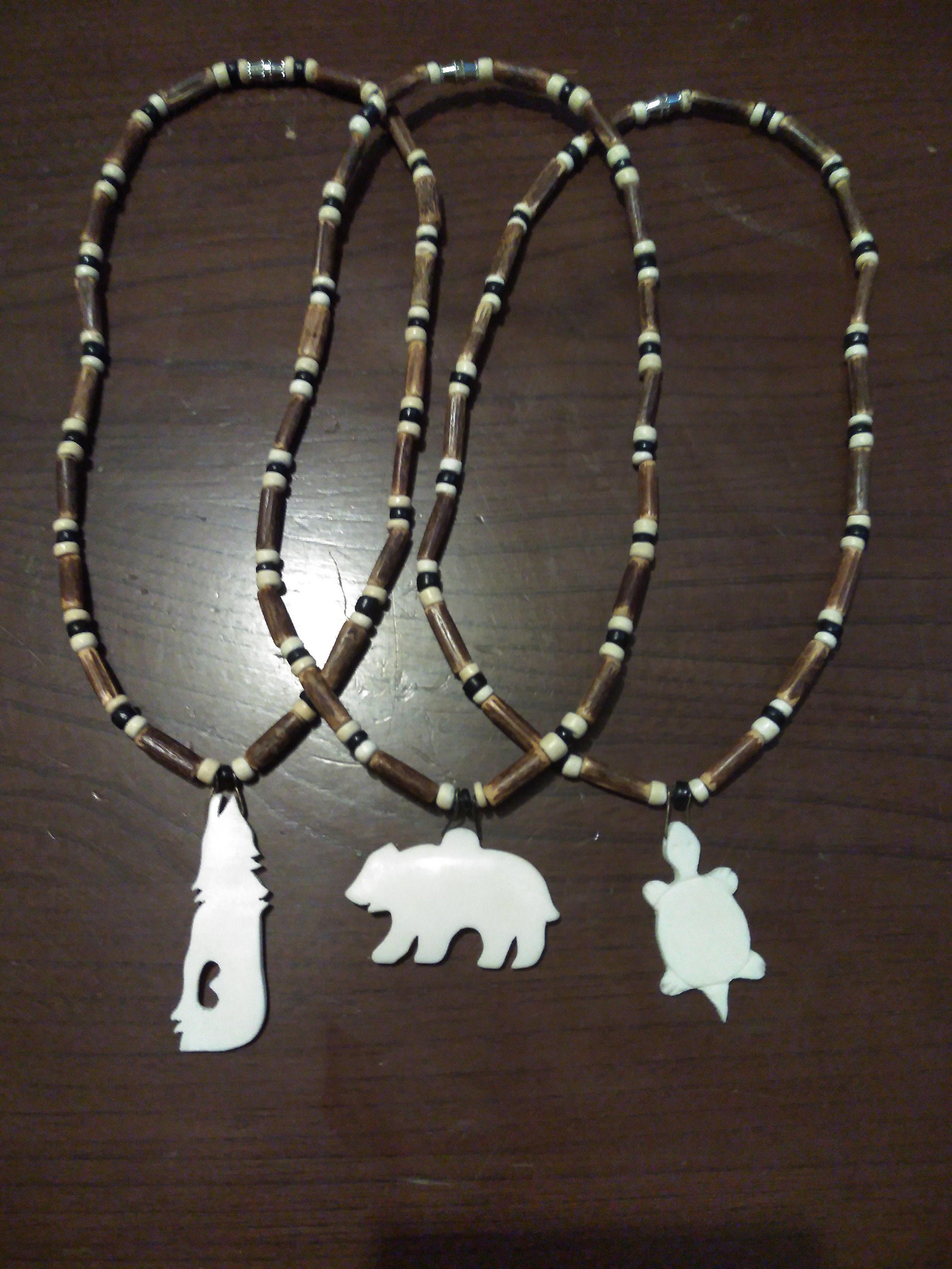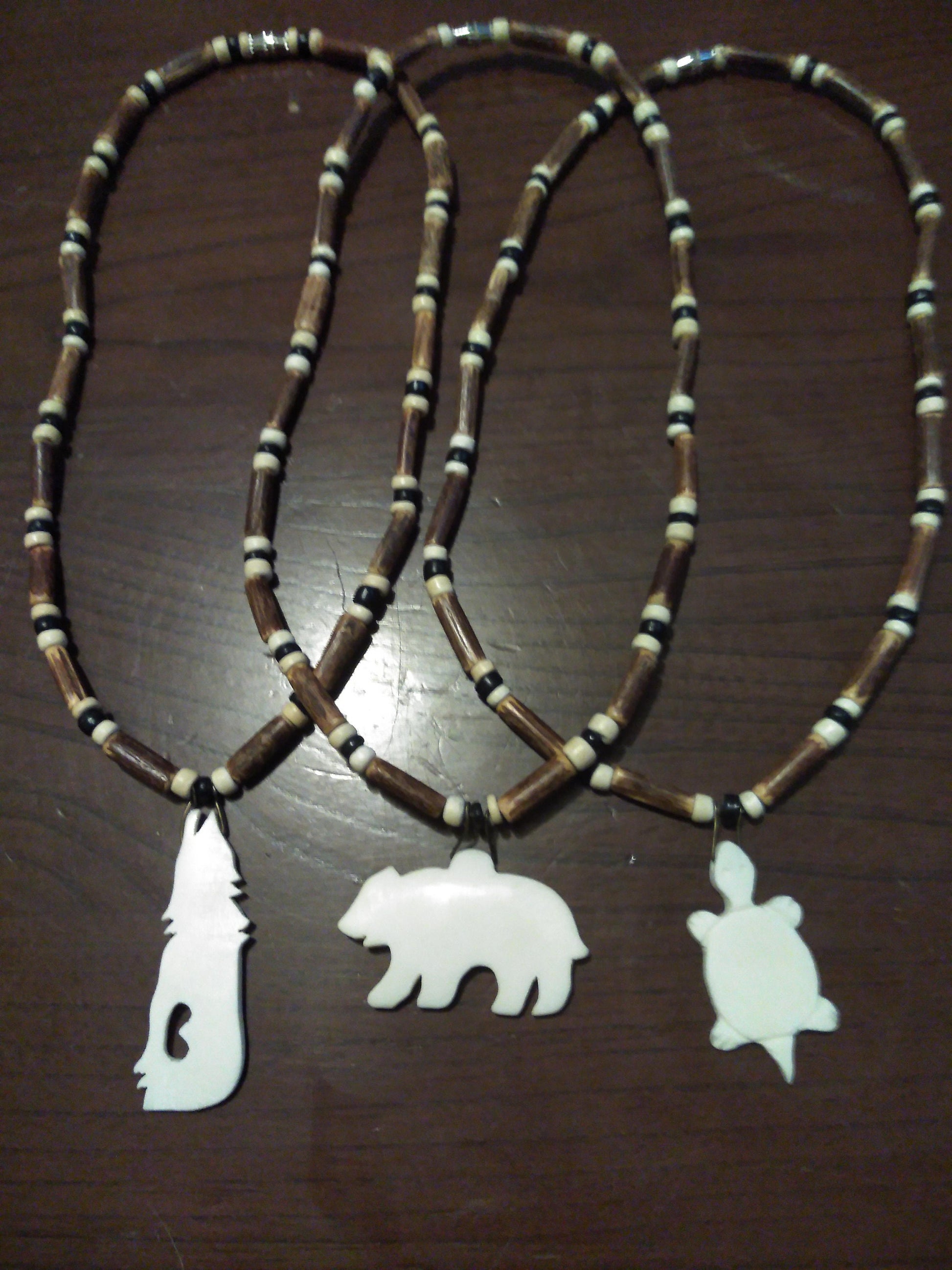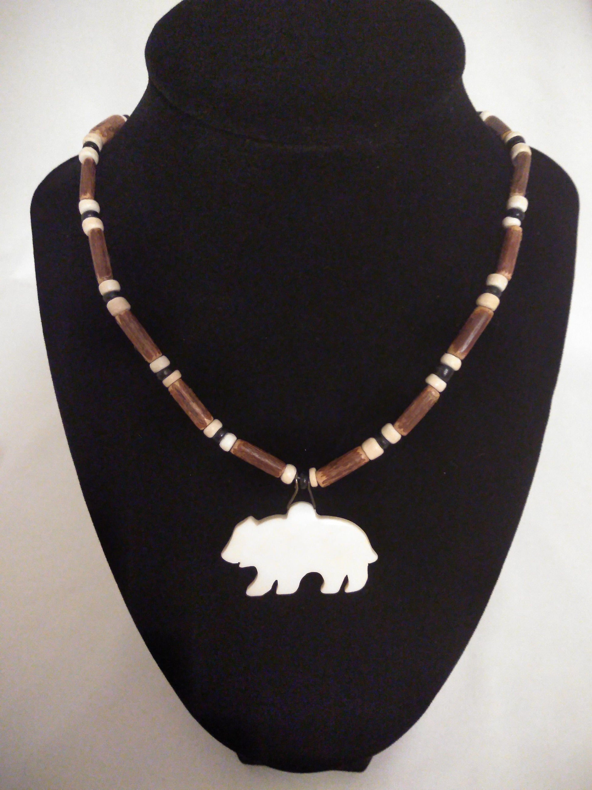 Bear, Turtle, or Wolf Cow Bone Necklace Cow Bone, Wood 18" or custom size