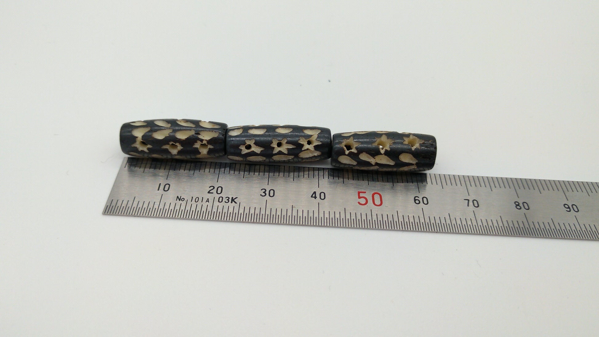 Hair Pipe, Buffalo Bone, Hand Carved, Beads, Hair Pipes, Black and White, package of 3 or 6 for Necklaces, Earrings, Jewelry
