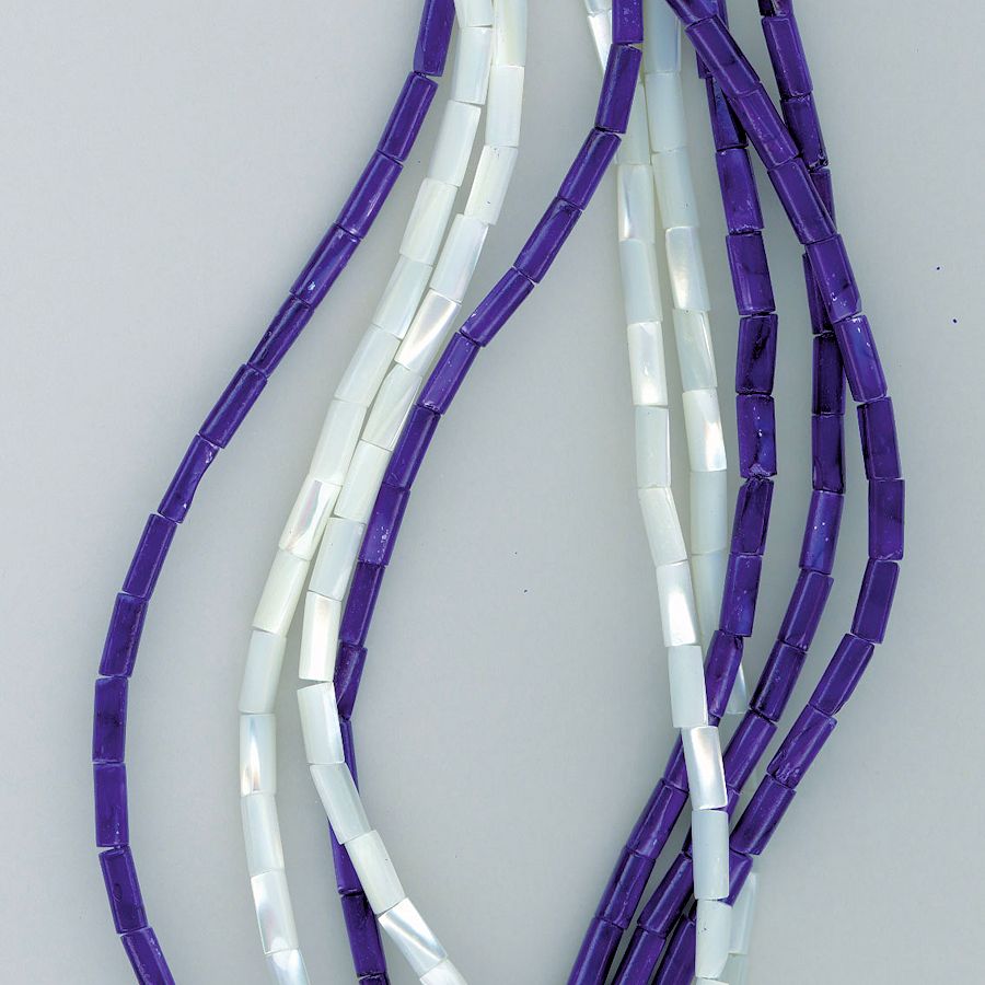Prized by the Eastern Woodland tribes, these clamshell wampum beads come on a 14" long strand. Each bead is approximately 4 x 9mm in size. Prized as ornaments for traditional peace belts, necklaces, and chokers, these Dyed, color correct purple Clam shell beads offer a timeless beauty with a special significance. This Dyed Purple Wampum bead is much more affordable than the authentic highly expensive purple wampum. Please note that these are genuine Clamshell / Quahog shell, not mother of pearl imitations.