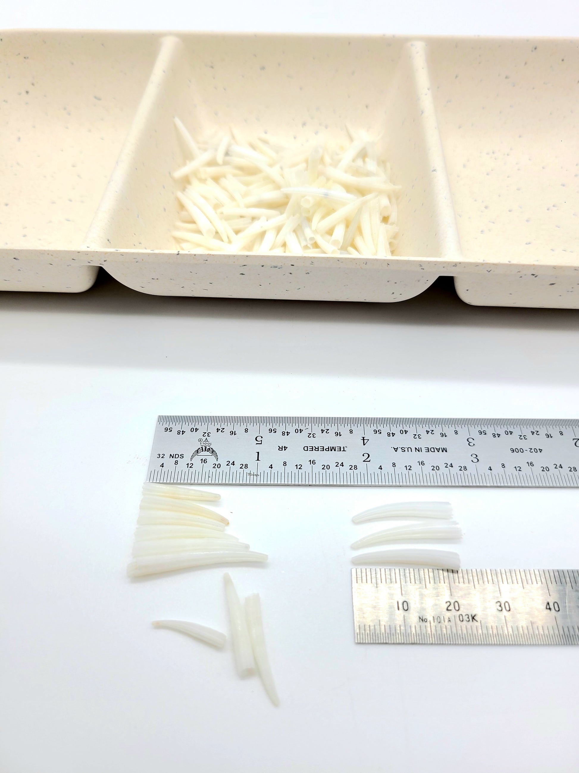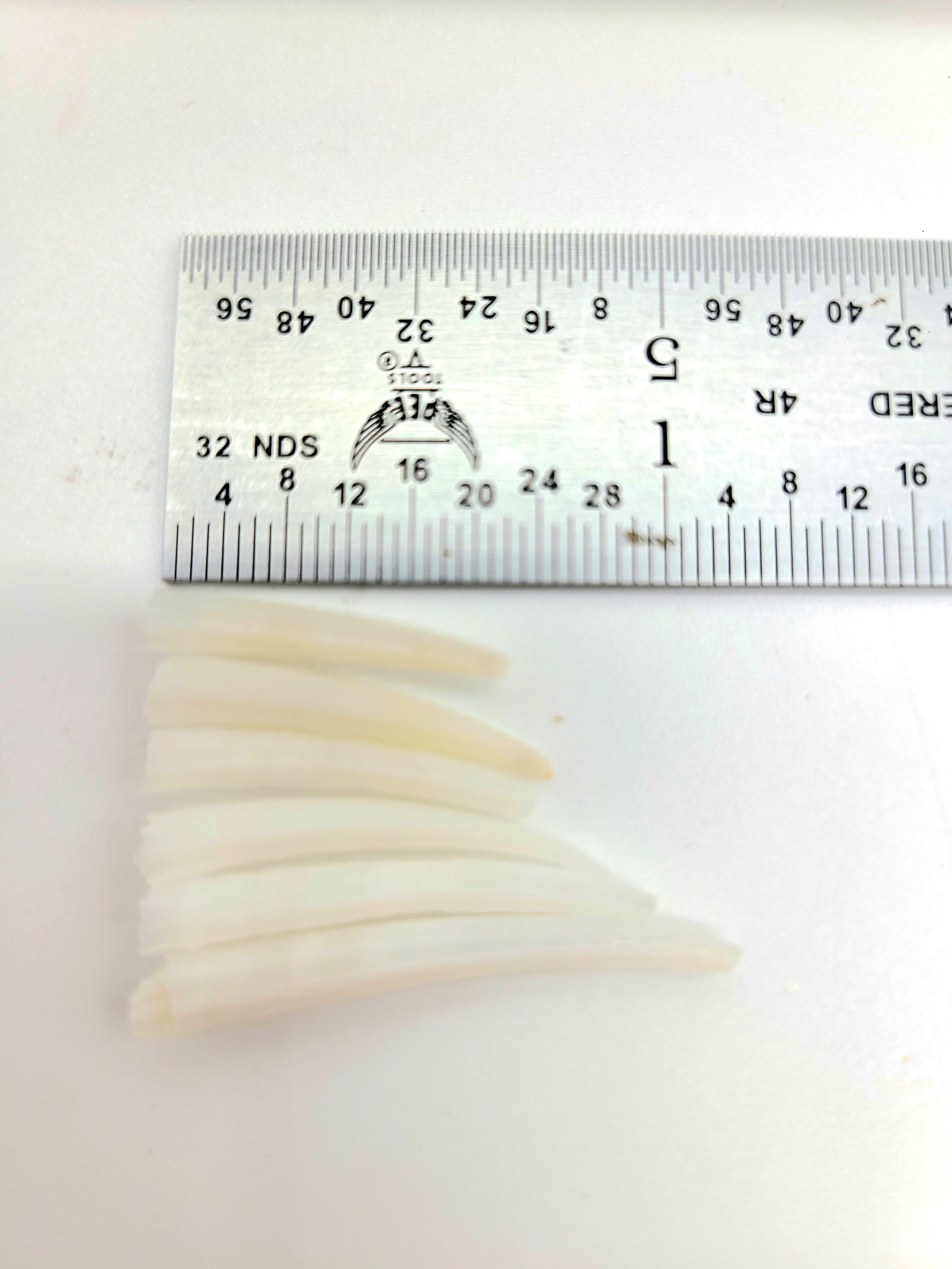 Ridged Dentalium Shells, 3/4 - 1 1/4" length Small, wait list for large, great for Jewelry, Earrings, Chokers, Necklaces and decorations