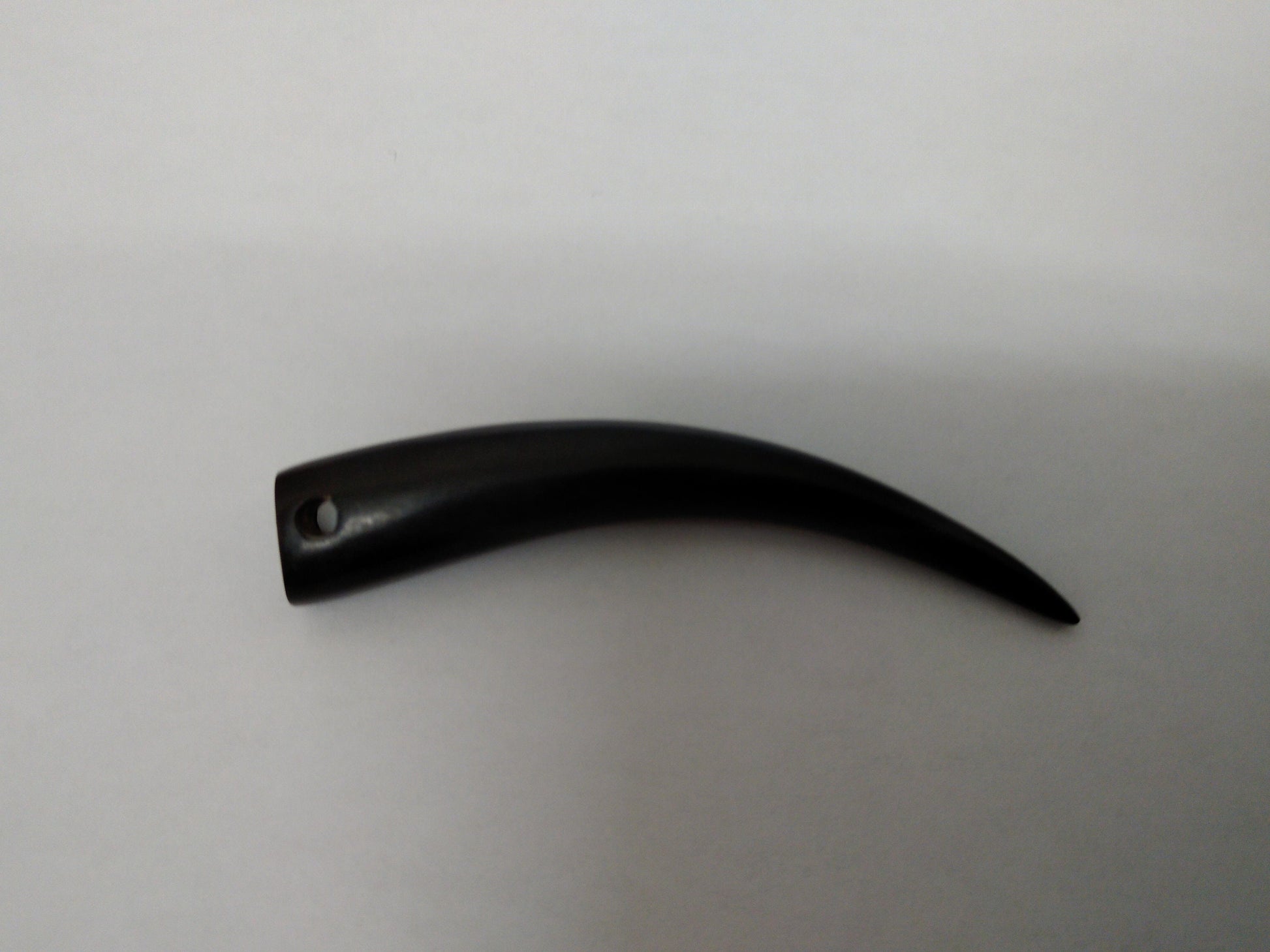 Hand Carved Black Buffalo Horn "Talon" also available in White Cow Bone. Carved to look as close to authentic as possible. Fantastic for Ceremonial purposes, Headdress, Pendants, Chokers, armbands, or earrings. Please note, that like all things in Nature no two will be identical. There will be slight variations and characteristics that differ from one to the next.