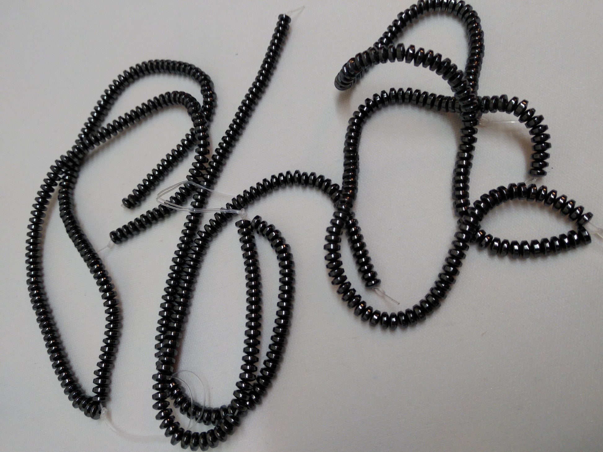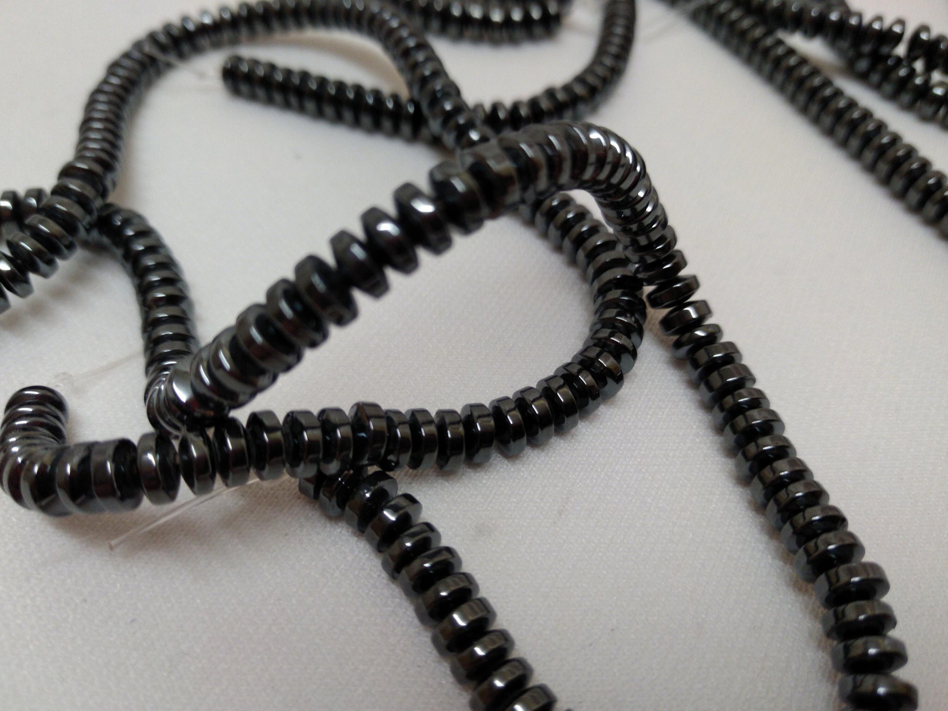 8" pre strung Hematite (70% Iron & 30% Oxygen) saucer shaped Beads. Approximately 90 beads per string These beads can be used as spacers as they are somewhat flattish. Or they can be used with other beads to soften the look of Stone, travertine, bone or shell. I especially like them with the smaller Lava Bead or Shell / semi precious gemstone Chips.
