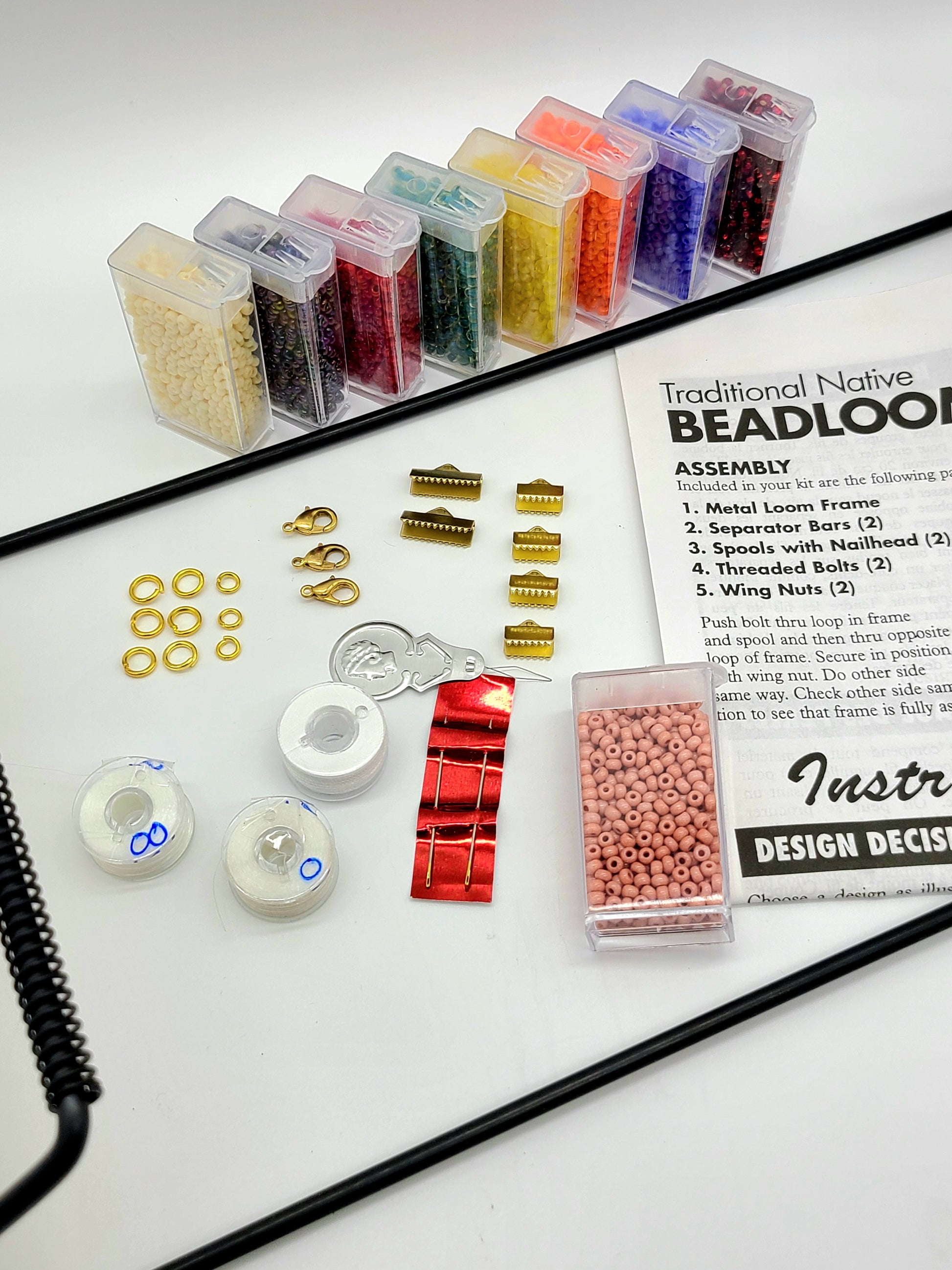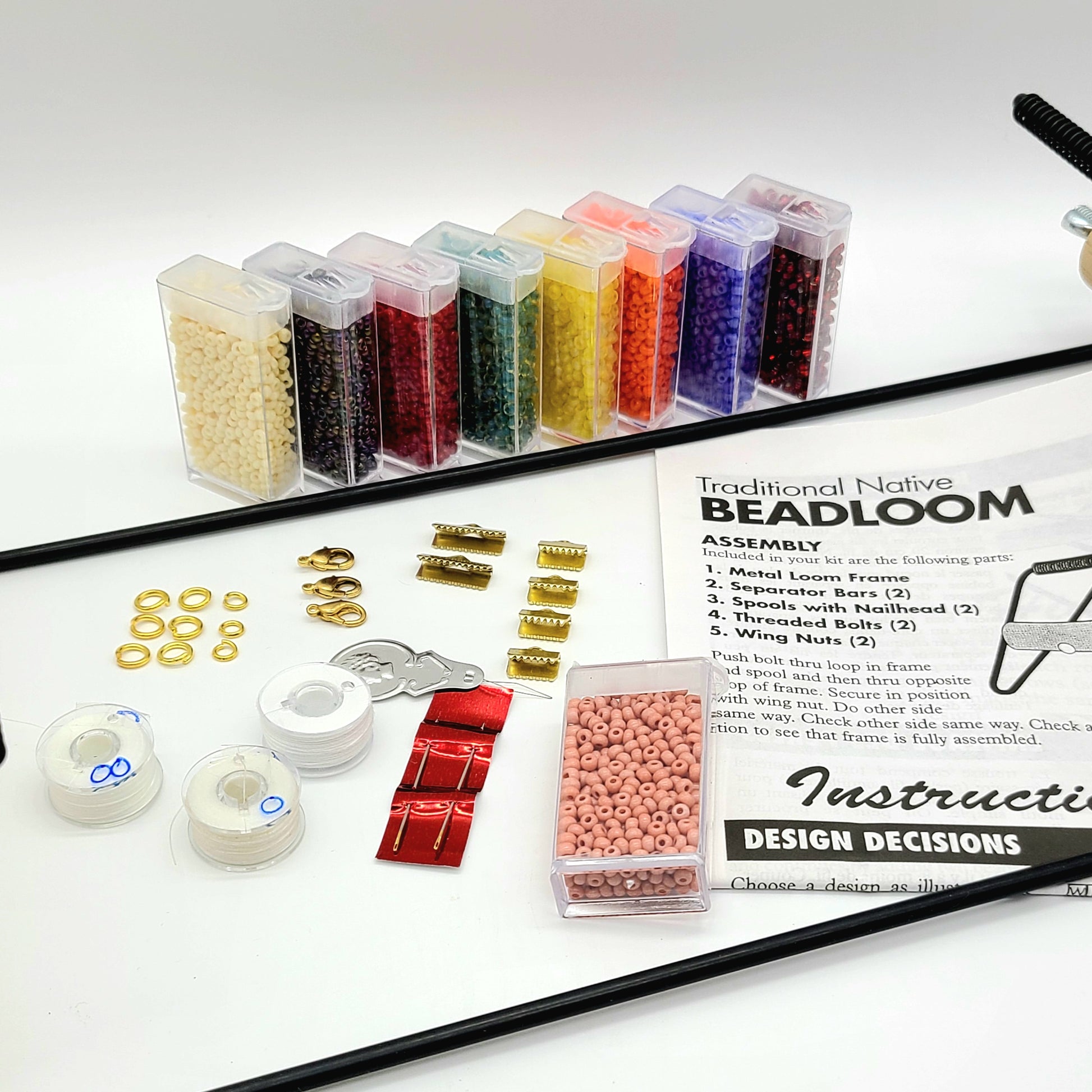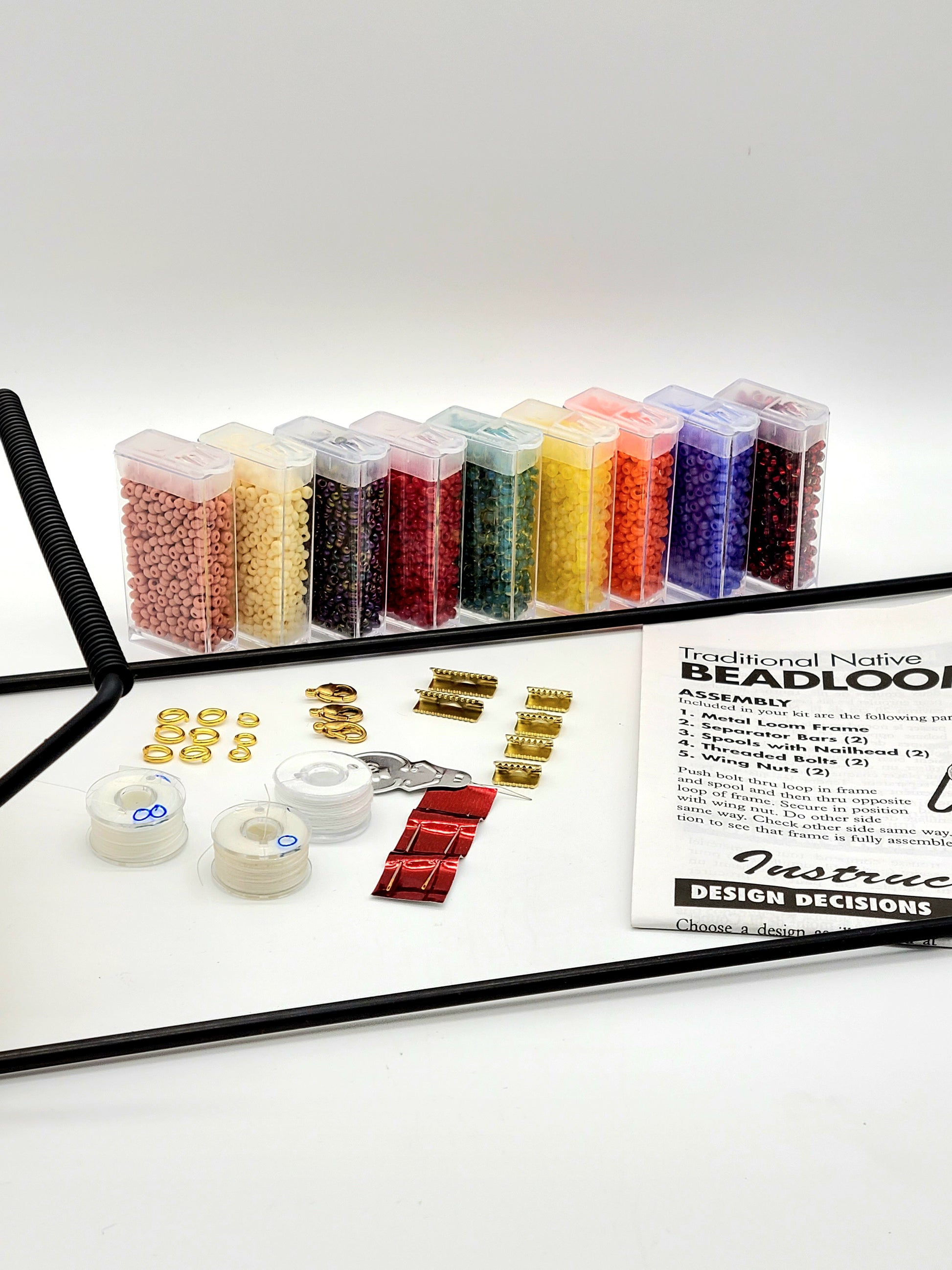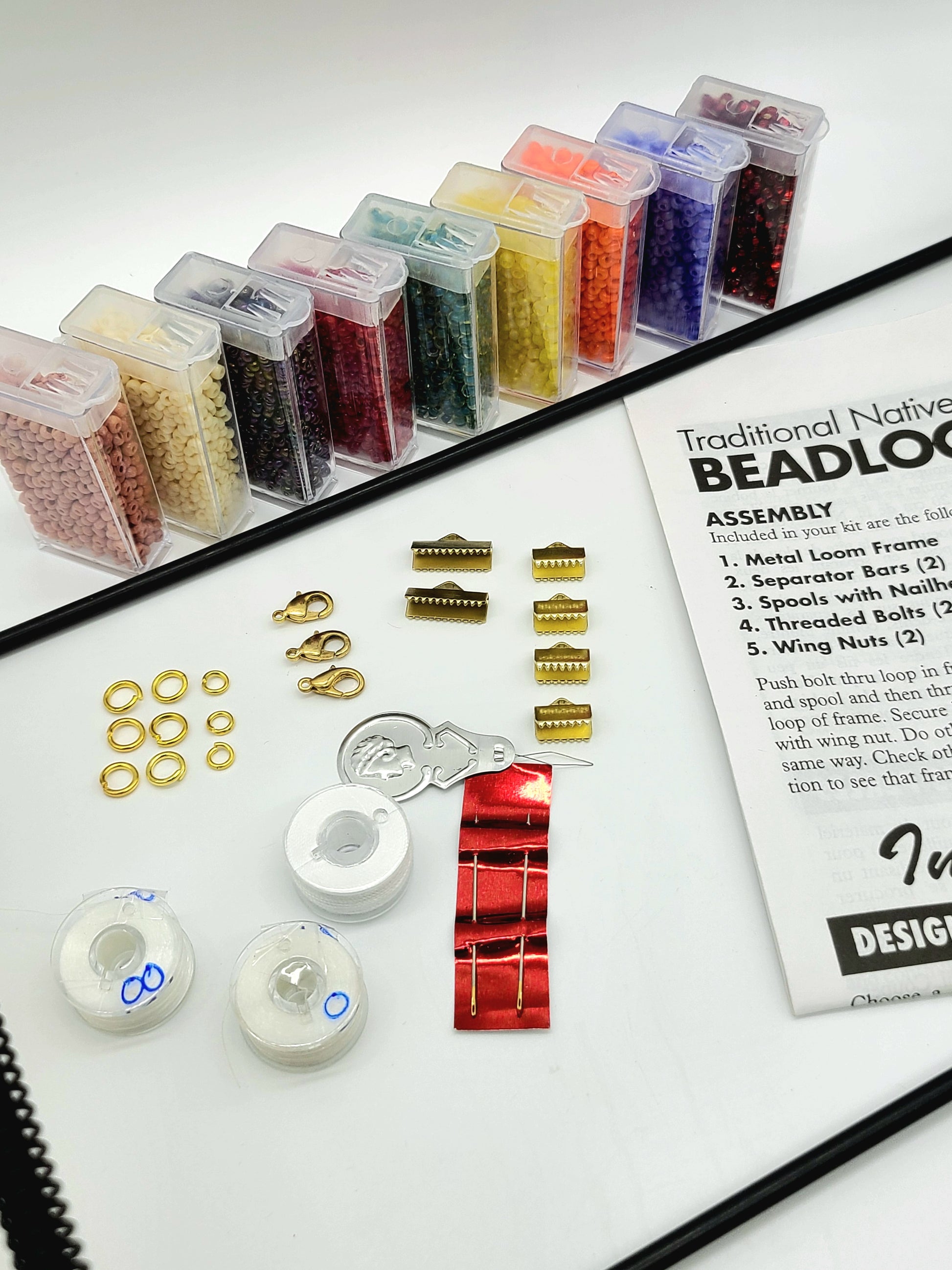 A Fantastic Deluxe Kit For creating beautiful beaded bracelets, necklaces, chokers, armbands and headbands. Jammed packed with all the items you require, to start creating your works of art! Over all dimensions 15 1/2" long x 6 1/8" wide x 3" high, the looming area is 6" x 8.75" (much larger than our smaller version) Included in this deluxe kit are