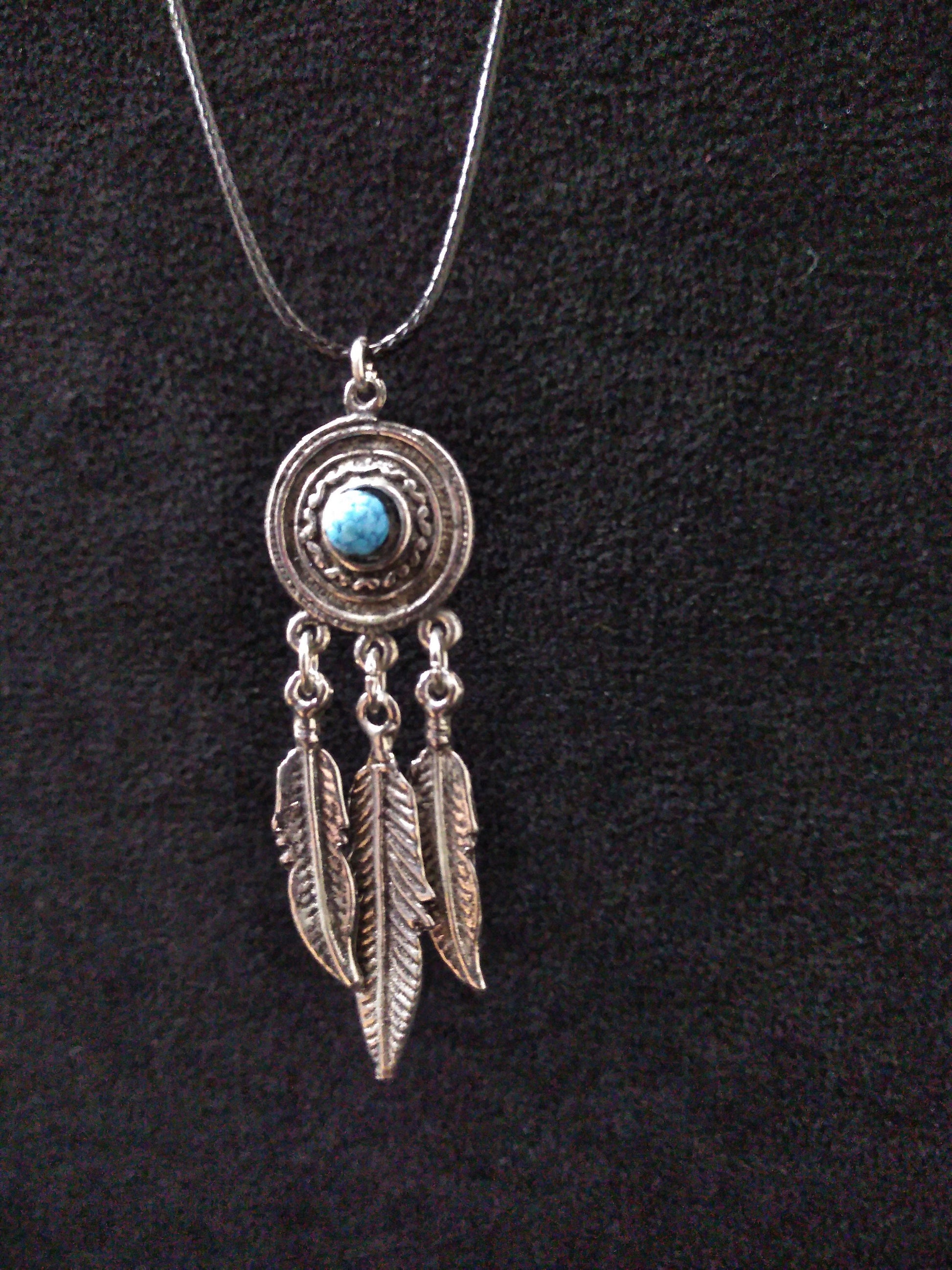 Necklace Dreamcatcher Collection, Necklace, 18" length, Feathers, Turquoise, Metal