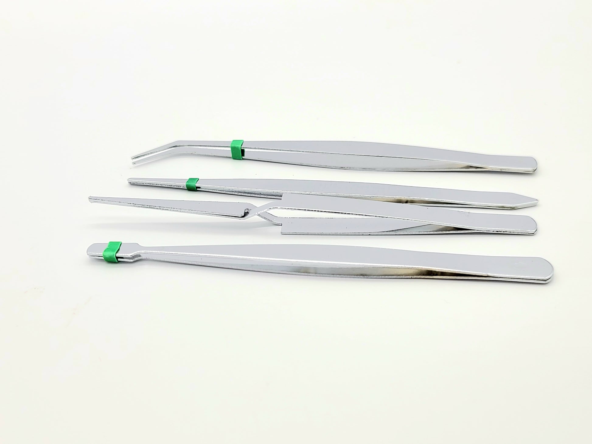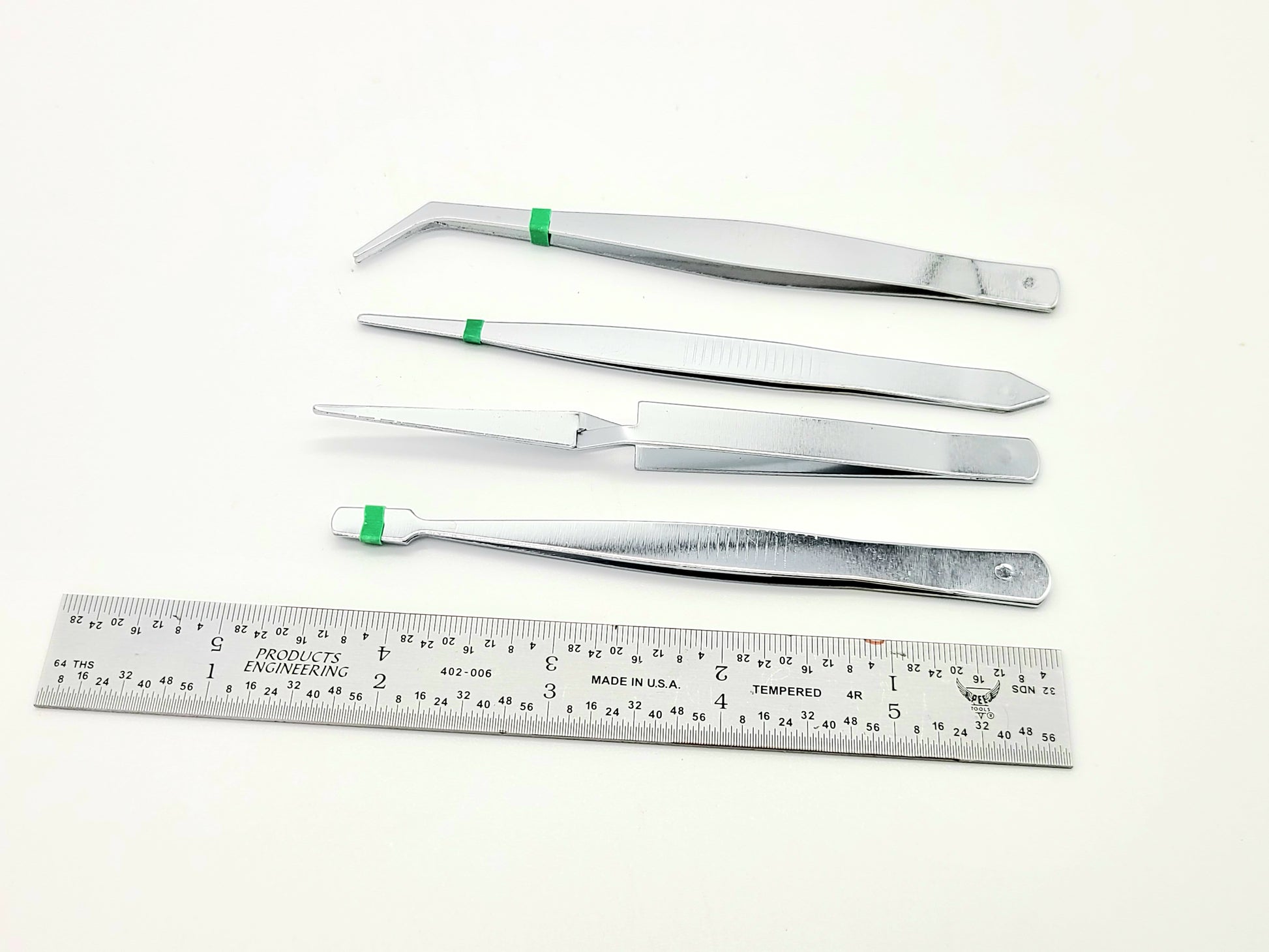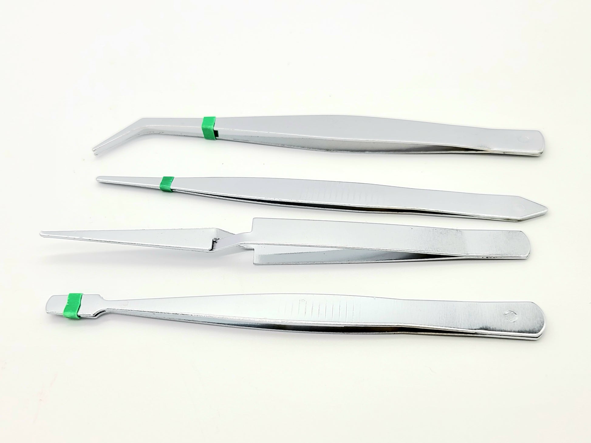 4 pc Tweezer Set for Jewelry, Beading, and Crafting