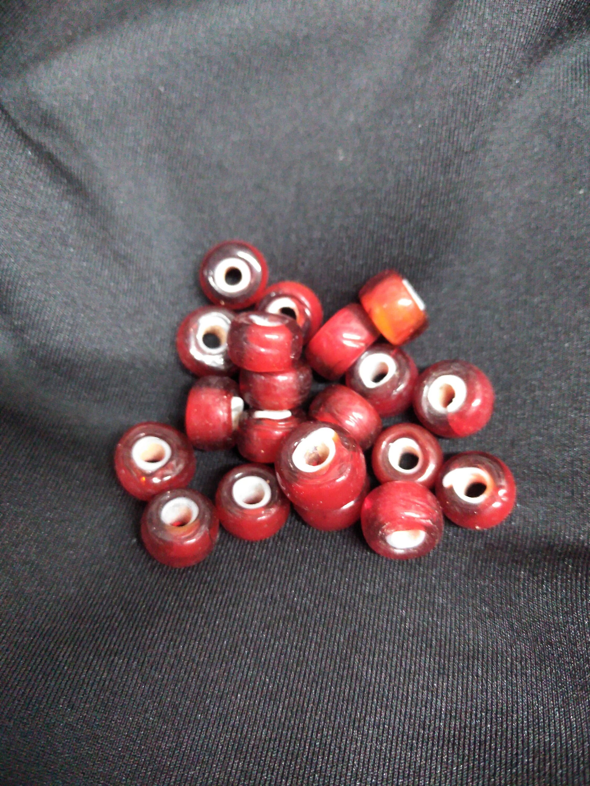 This package contains 20 Trade Beads, Each Bead is cold rolled/fired as a process (firing powder may still be present to authenticate the process). Which means; no two beads are alike!